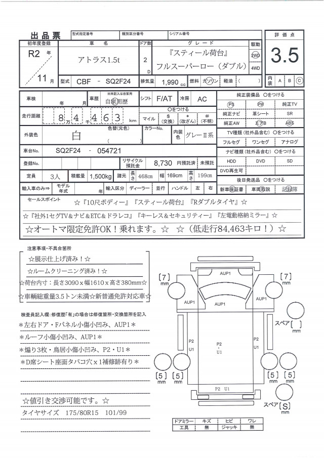 ☆R2年アトラス1.5tフルスーパーロー(ダブル)スティール荷台・10尺ボディー(低走行84,463キロ!)☆『キーレス&セキュリティー』『左電動格納ミラー』☆『社外1セグTV&ナビ&ETC&ドラレコ』☆車輌総重量3.5トン未満☆新普通免許対応車☆オートマ限定免許OK!乗れます。☆遠方の方でも安心!ルームクリーニング済み!☆展示仕上げ済み!☆
