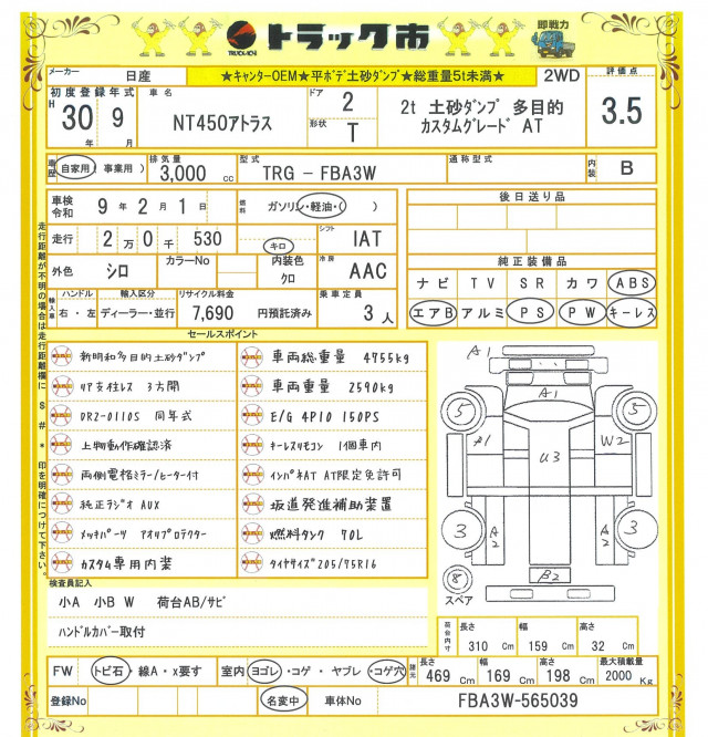☆NT450アトラス☆キャンターOEM車☆土砂ダンプ☆カスタムグレード☆多目的ダンプ☆リア支柱レス☆3方開☆坂道発進補助装置☆上物動作確認済☆両側電格ミラー/ヒーター付き☆メッキパーツ☆アオリプロテクター☆純正ラジオ☆車両総重量5t未満/準中型免許可☆2000kg