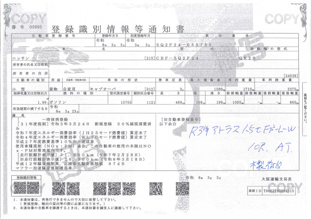 | 車検 | 抹消 |