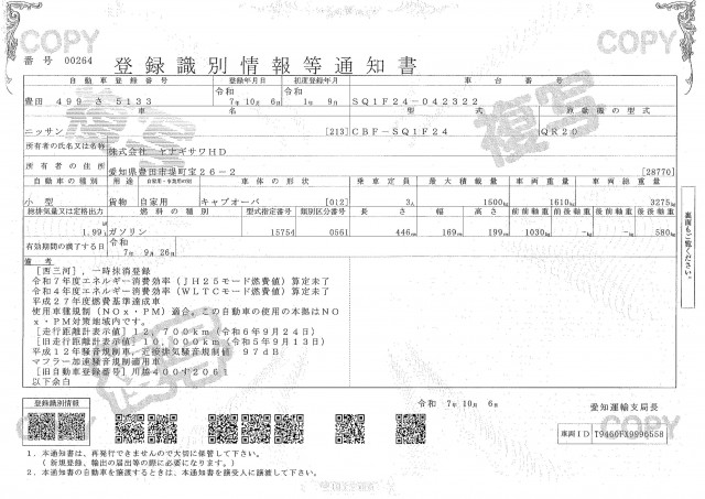 | 車検 | 抹消 |