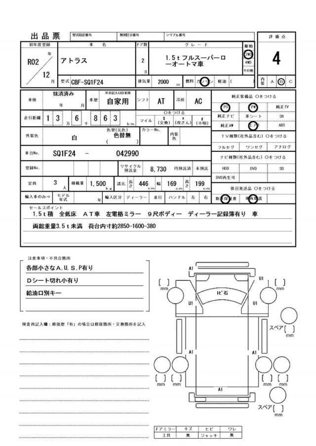 価格には保険料、税金(車両本体の消費税除)、リサイクル料金、リサイクル預託金相当額、登録、納車、陸送等に伴う費用等は含まれておりません。