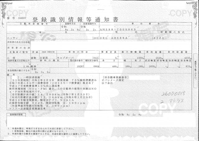 | 車検 | 抹消 |