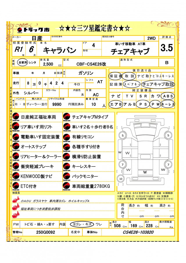 チェアキャブ10人乗り車いす移動車 車いす2名 リア車いす用リフト オートステップ 各手すり付き リアヒーター&クーラー 衝突軽減ブレーキ 車線逸脱警報 ナビ バックモニター キーレス AT車