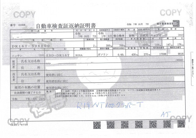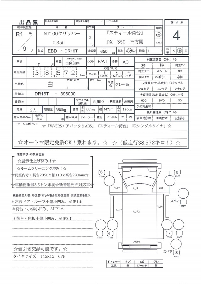 ☆R1年NT100クリッパートラック0.35t『DX』3方開(2人乗り!)☆(低走行38,572キロ!)『W/SRSエアバック&ABS』☆車輌総重量3.5トン未満☆新普通免許対応車☆オートマ限定免許OK!乗れます。☆遠方の方でも安心!ルームクリーニング済み!☆展示仕上げ済み!☆