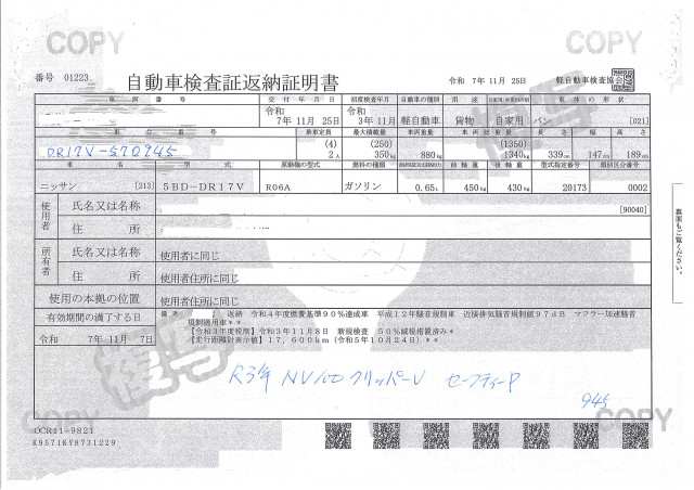 | 型式 | 5BD-DR17V |