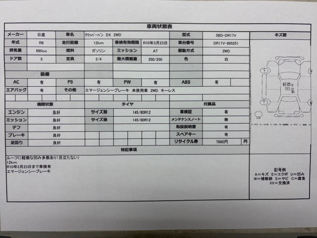 価格には保険料、税金(車両本体の消費税除)、リサイクル料金、リサイクル預託金相当額、登録、納車、陸送等に伴う費用等は含まれておりません。