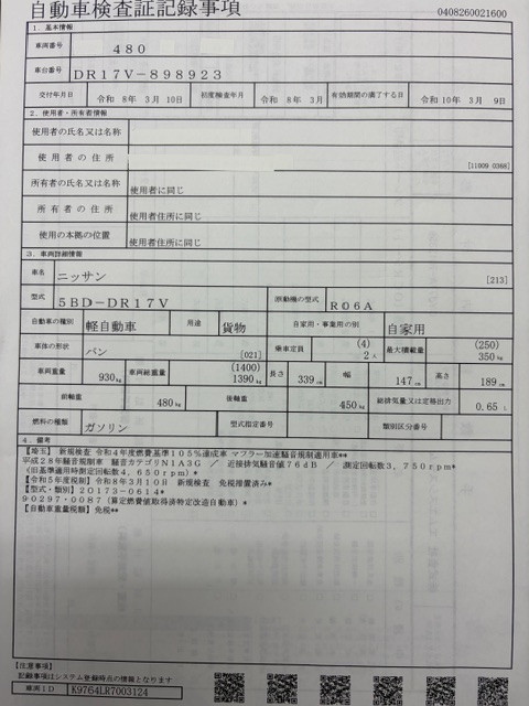 | 型式 | 5BD-DR17V |