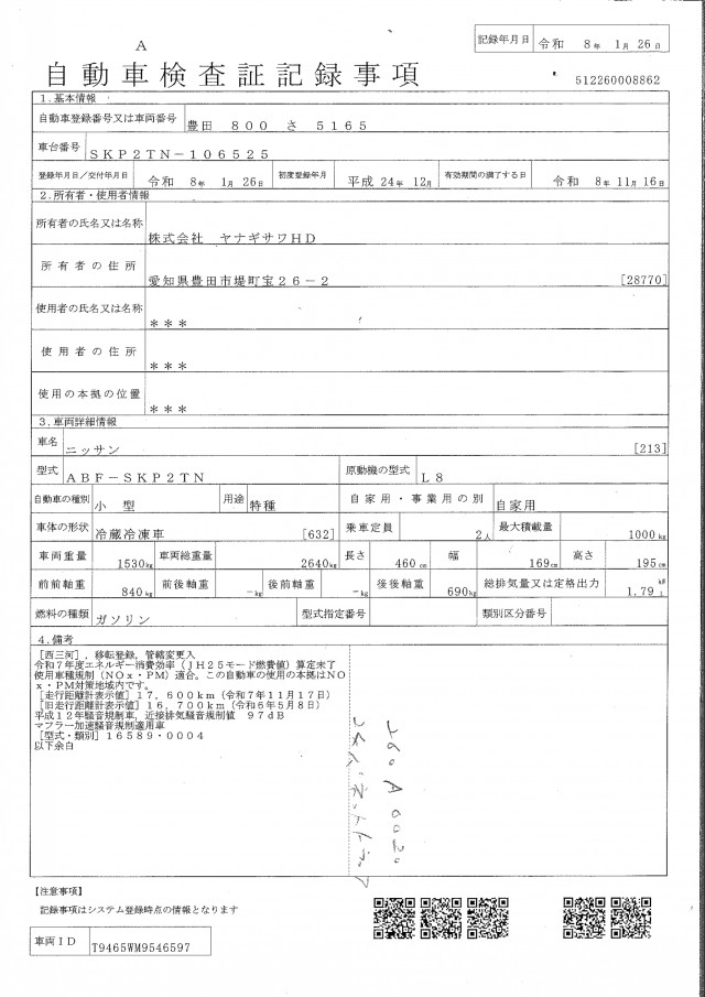 | 走行距離 | 17,760(km) |