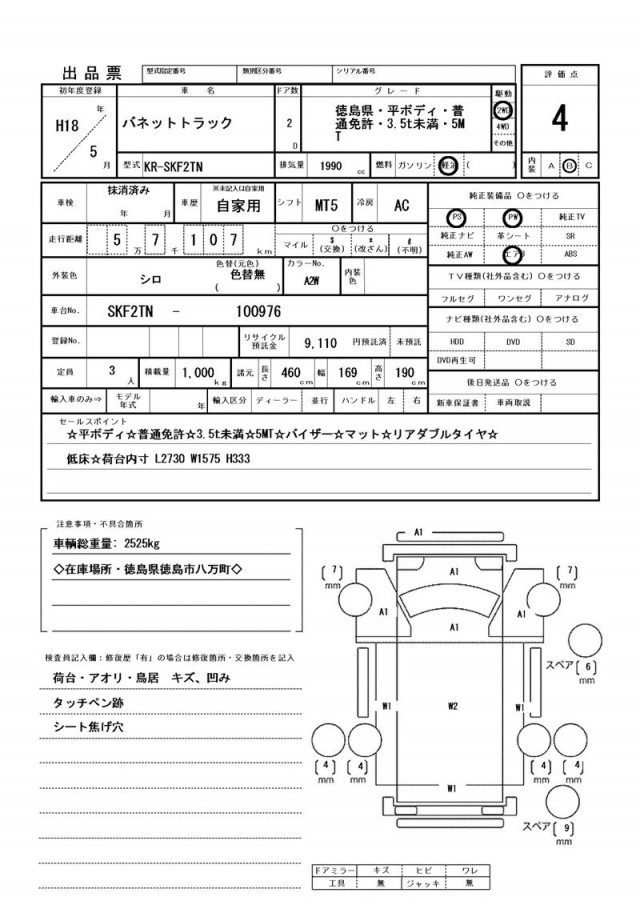 | メーカー/車名 | 日産 バネットトラック |