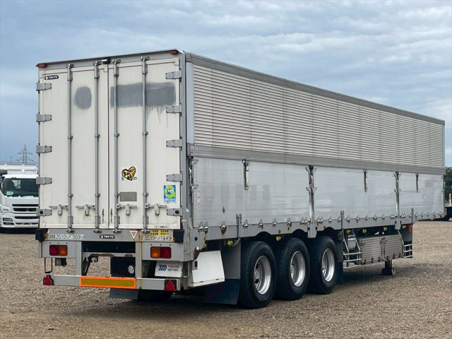 3軸★トレーラーウイング・シングル引き・エアサス・リフトアクスル・床上地上高1360mm・床鉄板・ラッシング1段・フック13対・手動ランディングギア・ABS・アオリ6方開・第五輪荷重10,390kg以上