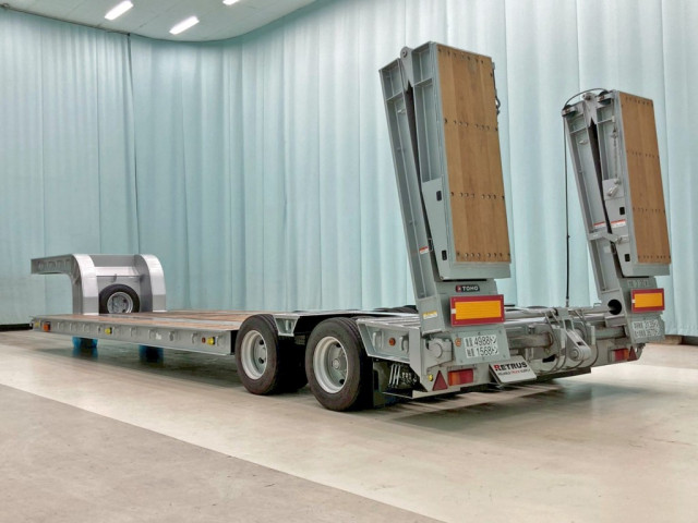 未登録・シングル引きの重機用トレーラが入荷いたしました。 荷台内寸は(L=6.15m、W=2.99m)で積載見込みは21,300kgです。 第五輪荷重10,220㎏以上のトラクタヘッドで牽引可能です。 是非この機会にお問い合わせください!
