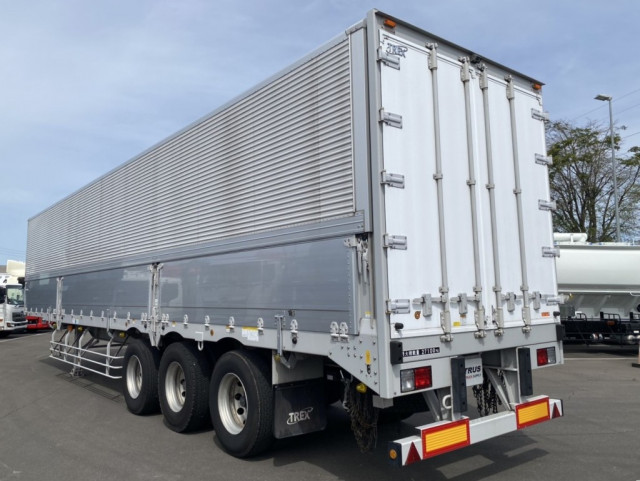 未登録のカーゴフロア製のムービングフロアトレーラが入庫しました!! ボディ内寸はL=12.06m W=2.35m H=2.35mで約66.6立米となっております。 第五輪荷重は11.5tクラスのシングルヘッドでけん引可能です。 主流のリフトアクスル付きですので、タイヤや高速料金にも優しい仕様ですよ!! 納期が掛かる車種ですが、現車が御座いますので、即納可能です。 大変人気車両のため、早期売却の可能性が御座います。お早目のお問い合わせをお願い致します。