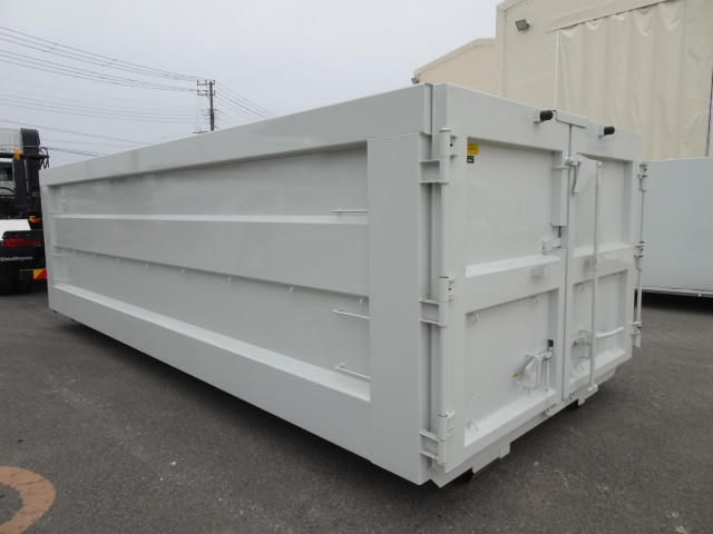 22トンアームロールコンテナ、未使用品です♪新明和工業製です♪観音開きです♪他、下開きもご用意しております♪ 長さ5,900mm 幅2,300mm 高さ1,600mm 約21.7m3 テールゲート2枚観音 板厚 床,サイド,テール,前壁板厚3.2㎜ 塗装白