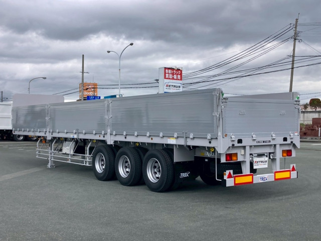 未登録!3軸煽り付平トレーラが入庫いたしました。 第五輪荷重11.5tクラスのシングルヘッドで牽引可能です。 荷台寸法はL=13.00m W=2.40m H=0.98mで見込積載は27,400kgとなっております。 リフトアクスル付きですので、高速料金にも優しいですよ!! ご不明な点等が御座いましたら、お気軽にお問い合わせください。
