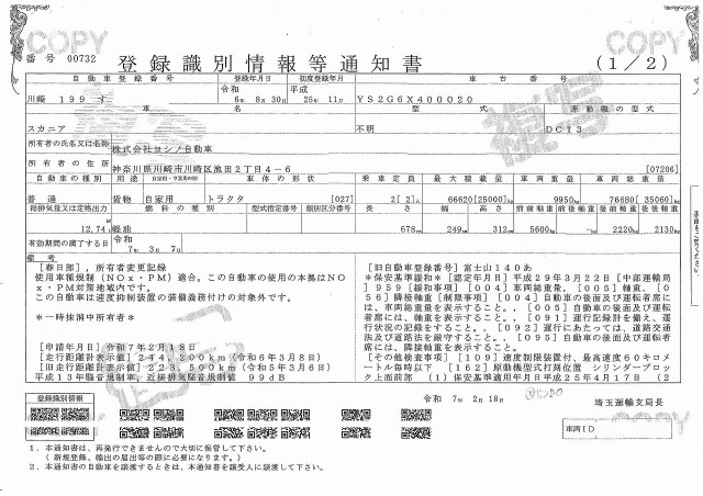 | 車検 | 抹消 |