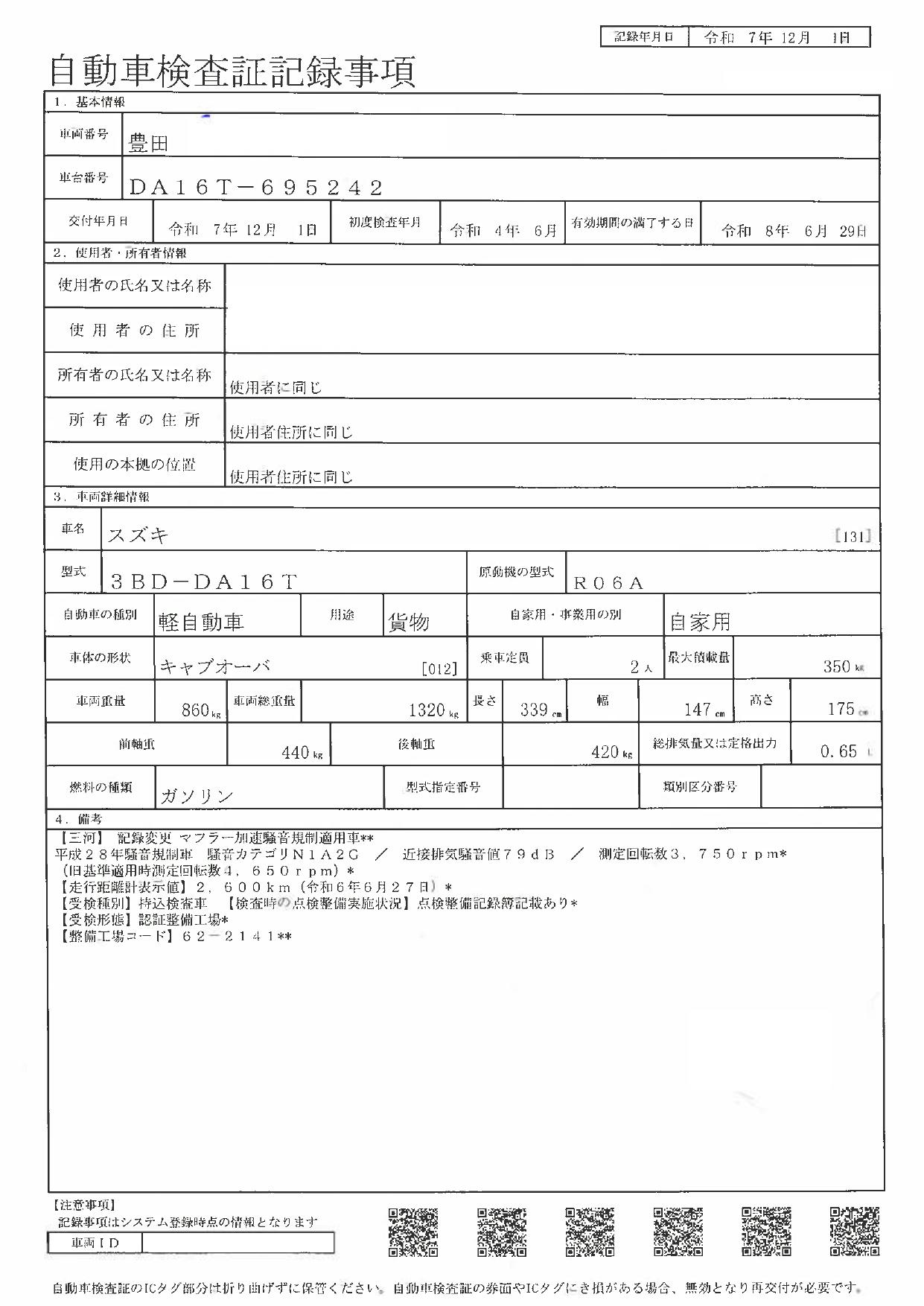 | 型式 | 3BD-DA16T |