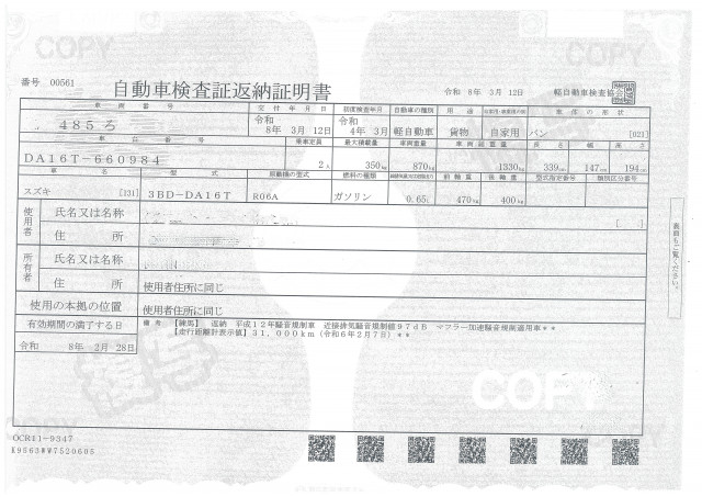 納車までに認証工場にて法定点検整備を実施します。もちろん点検記録簿もお渡しいたします。