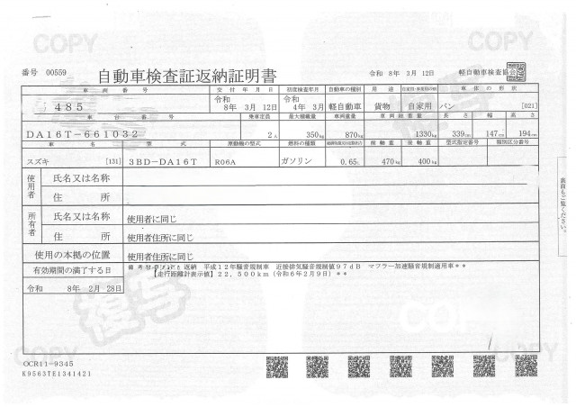 | 車検 | 抹消 |