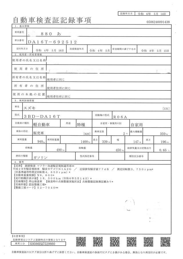 | 型式 | 3BD-DA16T |