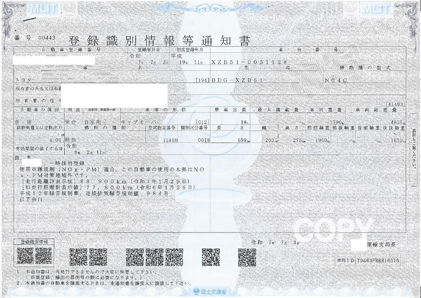 ※抹消車両は、登録時最大積載量が減トンされる可能性が御座います。
