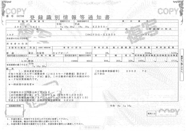 | 車検 | 抹消 |