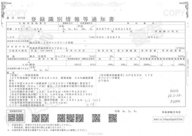 | 車検 | 抹消 |
