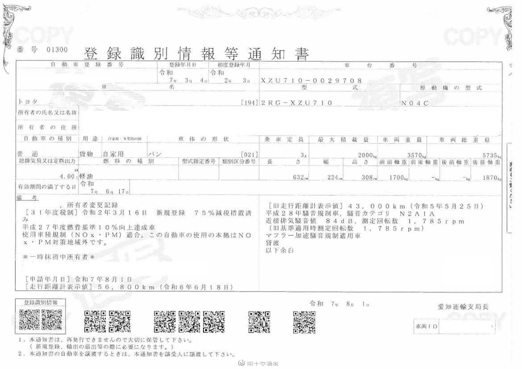 支払総額は愛知県内で登録の場合の金額です。ETCセットアップ費用は含まれていません。