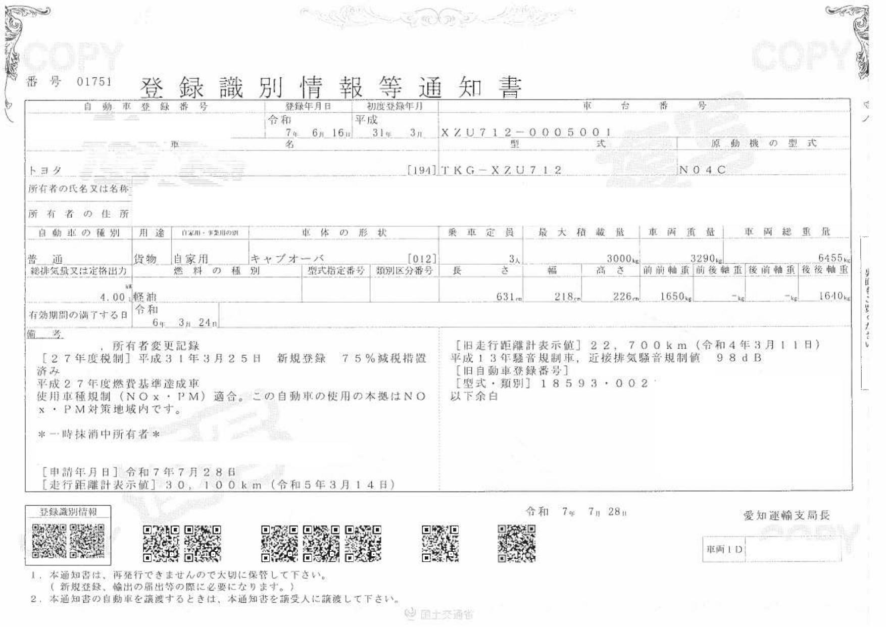 支払総額は愛知県内で登録の場合の金額です。ETCセットアップ費用は含まれていません。
