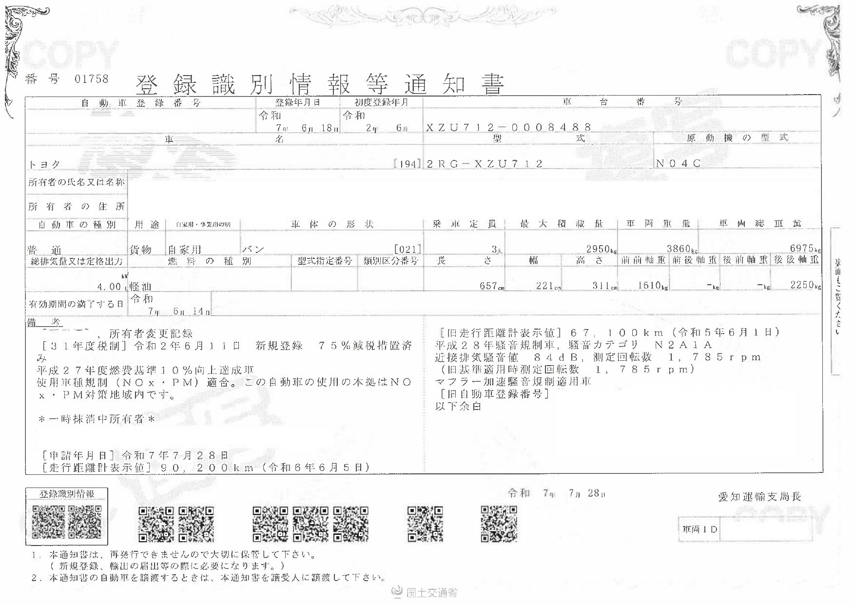支払総額は愛知県内で登録の場合の金額です。ETCセットアップ費用は含まれていません。