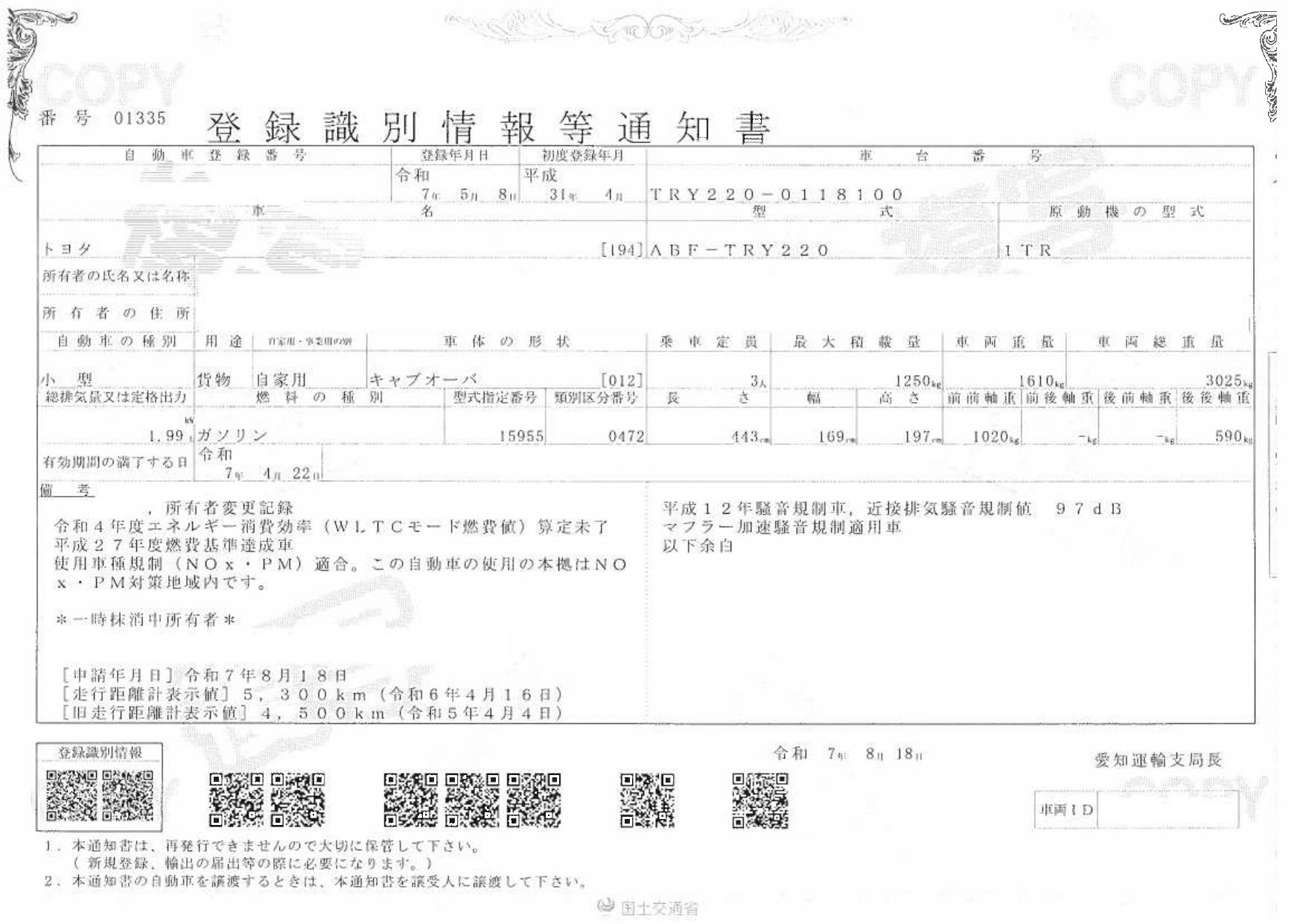 | 車検 | 抹消 |