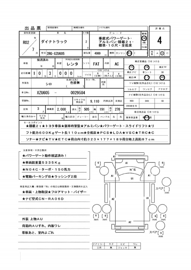 価格には保険料、税金(車両本体の消費税除)、リサイクル料金、リサイクル預託金相当額、登録、納車、陸送等に伴う費用等は含まれておりません。