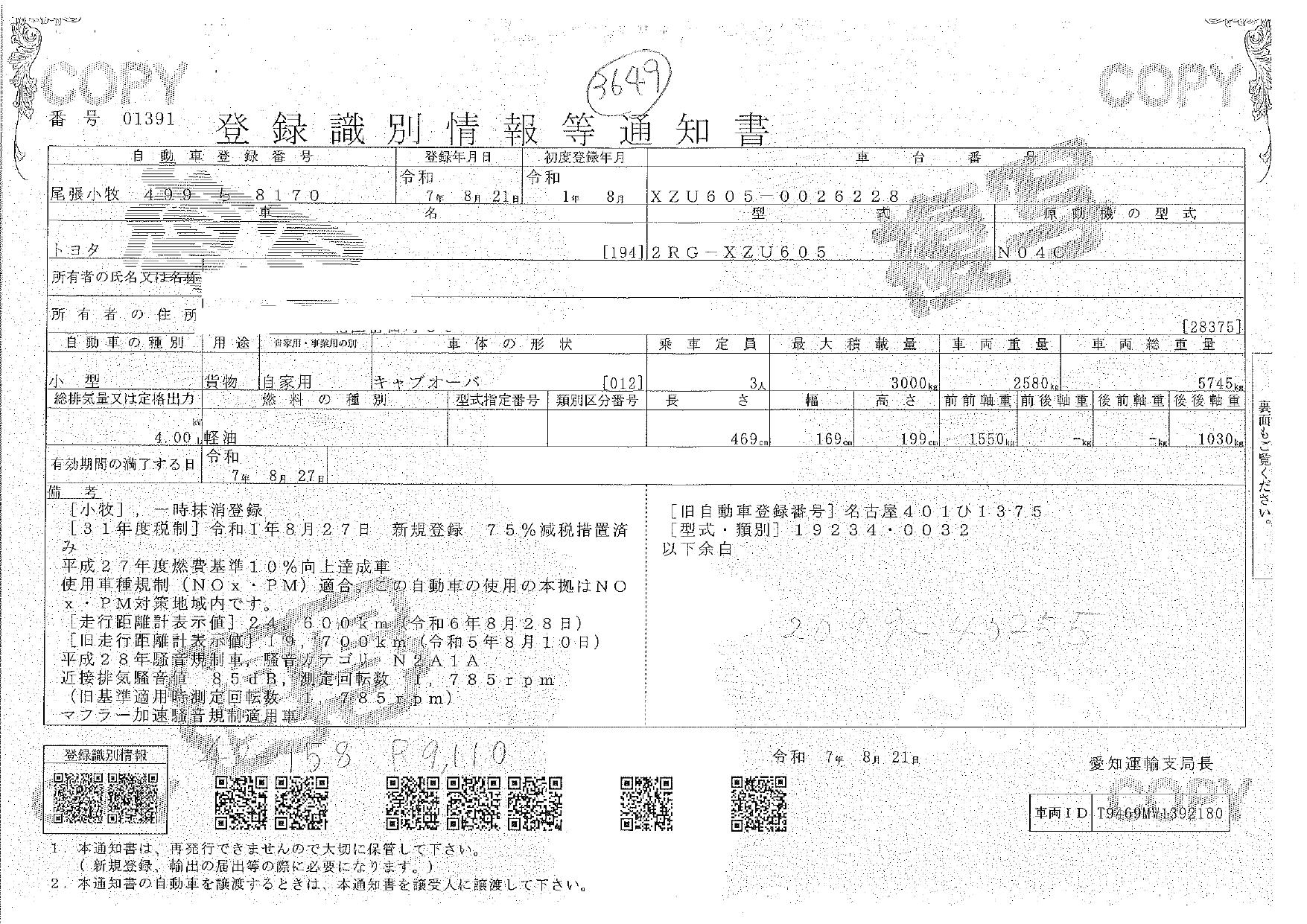 | 車検 | 抹消 |
