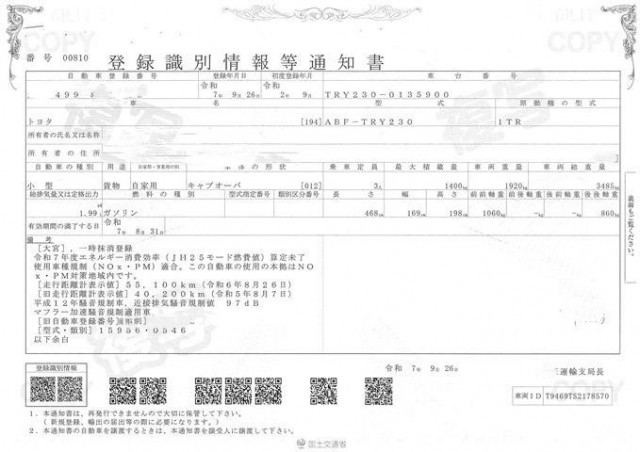 荷台内寸303×160×63 車両外寸468×169×198 車両総重量3.5t未満 新普通免許証 4ナンバー エンジン型式1TR 2000CC 保証付 小型 トラック
