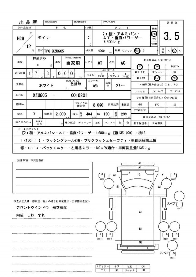 【2t積・アルミバン・AT・垂直パワーゲート600kg[縦135(99):横181(150)]】・ラッシングレール2段(36:101cm)・プリクラッシュセーフティ・車線逸脱防止警報・ETC・バックモニター・集中ドアロック・左電格ミラー・NOxPM適合・車両総重量5135kg