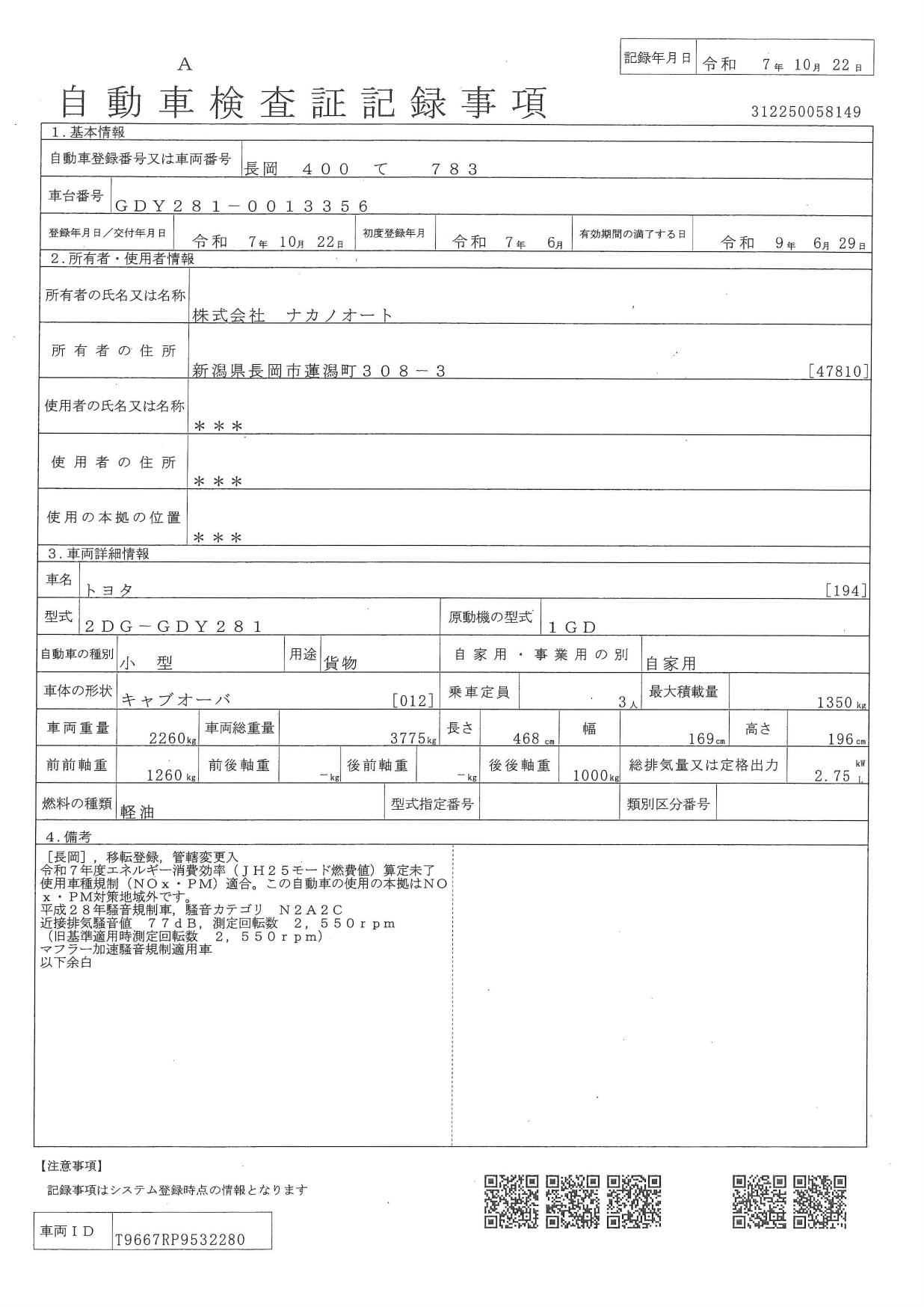 | 型式 | 2DG-GDY281 |