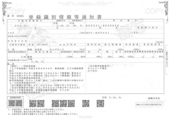 荷台内寸209×160×37 車両外寸469×169×198 車両総重量3.5t未満 新普通免許証 4ナンバー エンジン型式1KD 3000CC 保証付 小型 トラック