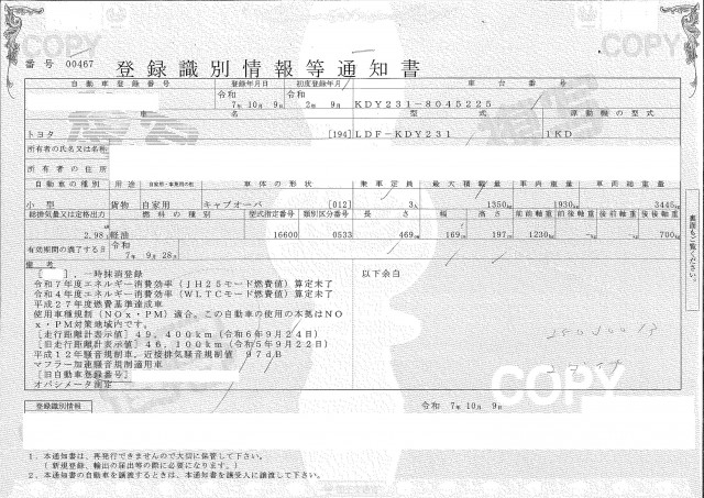 | 車検 | 抹消 |
