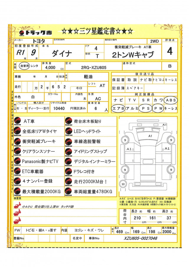 2トンWキャブ 荷台床木板貼り 衝突軽減ブレーキ 車線逸脱警報 クリアランスソナー アイドリングストップ ナビTV バックモニター ETC ドラレコ付き LEDヘッドライト AT車