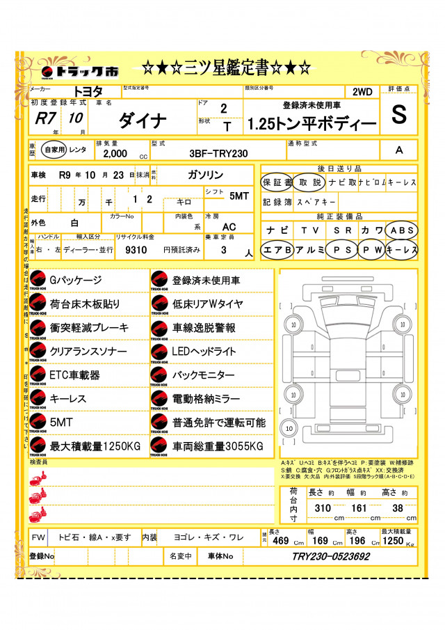 1.25トン平ボディーロング Gパッケージ 3.1mロングデッキ 荷台床木板貼り 低床リアWタイヤ 衝突軽減ブレーキ 車線逸脱警報 クリアランスソナー ETC LEDヘッドライト 5MT 登録済未使用車