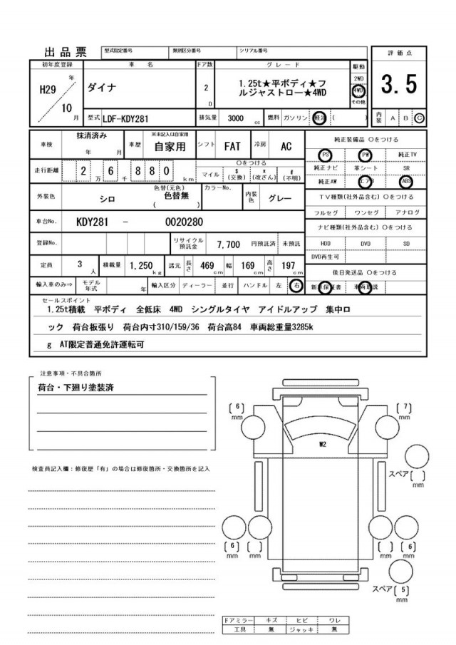 荷台・下回り塗装済 シートヨゴレ・ヤブレ・ヘタリ