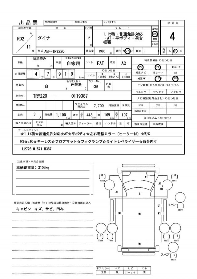 価格には保険料、税金(車両本体の消費税除)、リサイクル料金、リサイクル預託金相当額、登録、納車、陸送等に伴う費用等は含まれておりません。