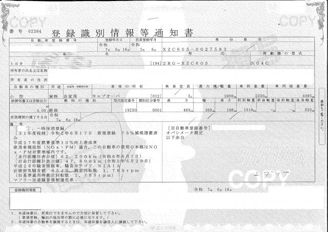 | 車検 | 抹消 |