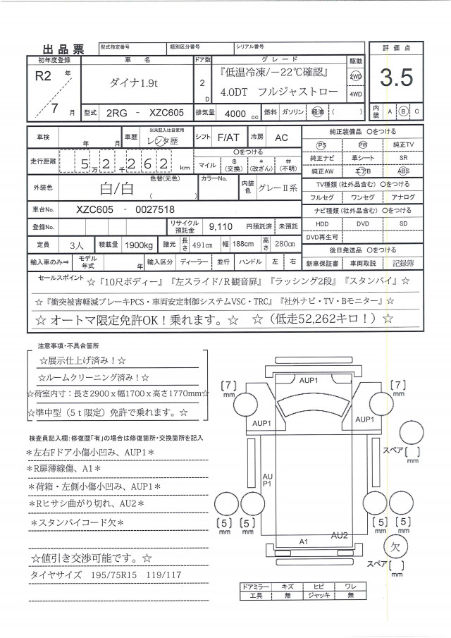 | サイズFR | 195/75R15 109/107 |