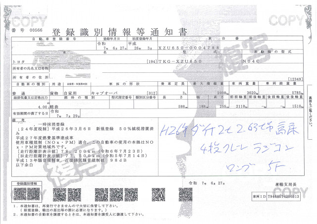 ☆H26年ダイナ2.0t『ロング』高床『2.6t吊り4段クレーン・ラジコン・フックイン』木製荷台(低走行79,684キロ!)☆『社外ETC!』☆車輌総重量7.5トン未満☆準中型免許対応車☆遠方の方でも安心!ルームクリーニング済み!☆展示仕上げ済み!☆
