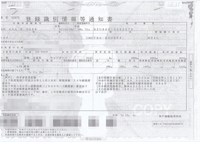 | 車検 | 抹消 |