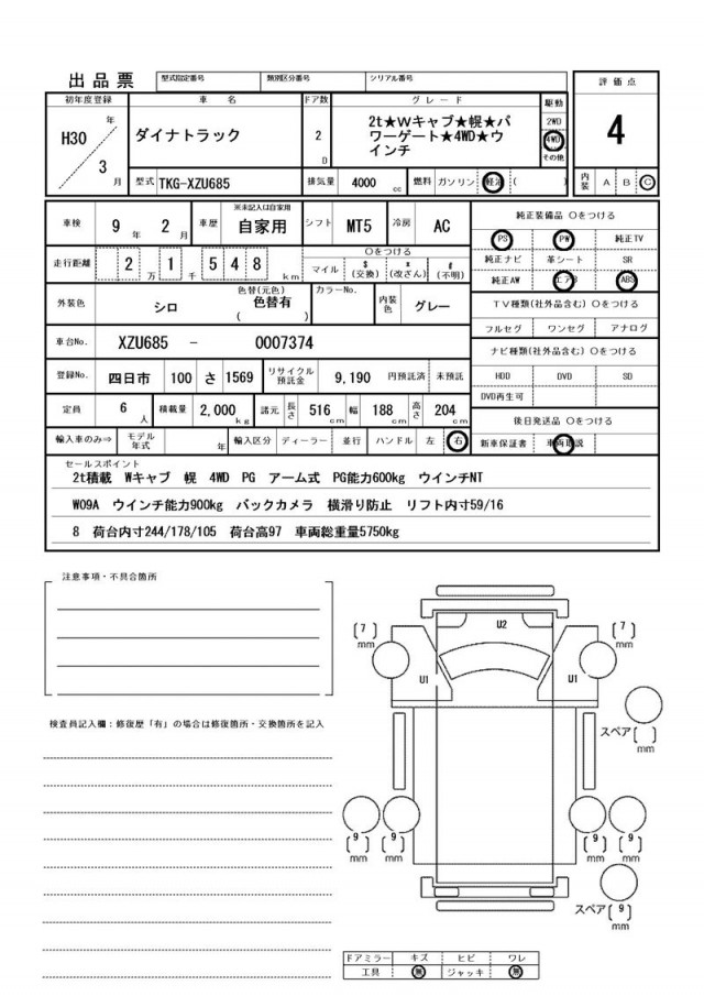 価格には保険料、税金(車両本体の消費税除)、リサイクル料金、リサイクル預託金相当額、登録、納車、陸送等に伴う費用等は含まれておりません。