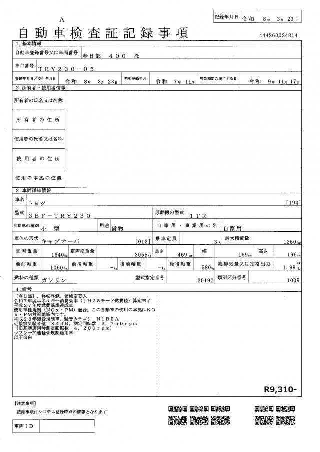 ※支払総額には、車両価格の他、保険料、税金、登録等に伴う費用、リサイクル預託金相当額等、購入時に必要な全ての費用が含まれています。※支払い価格は通常、2026年03月現在において、販売店住所の都道府県内登録(届出)で店頭納車の場合の価格となります。お客様の要望に基づくオプション等の費用、県外登録などをご希望の場合は別途店舗までお問合せください。