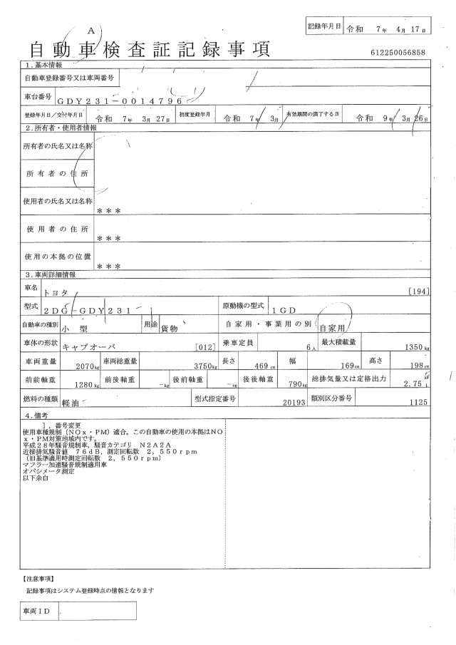| 型式 | 2DG-GDY231 |