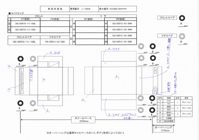 ▲フロントガラス:飛石キズ微小 ▲キャビン外装:キズ小、えくぼ ▲キャビン内装:使用上の擦りキズ ▲サイドミラーカバー:擦りキズ小 ▲下回り・シャーシ:各所サビ小、マフラーにサビ ▲リヤバンパー:左側変形 ▲左テールランプステー:内側へ少し押され ◆一時抹消の為、次回登録時に減トンの可能性があります◆※他、詳細はお問い合わせください