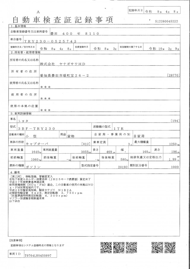 | 型式 | 3BF-TRY230 |